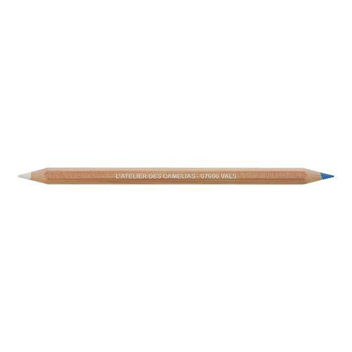 CRAYON BI-COUL PREST NATUREL mine TISSU – BLANC-BLEU – 17,6 cm, VERNIS INCOLORE, taillé des 2 côtés