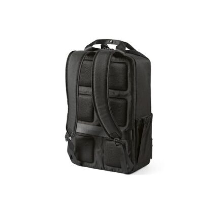 Ce sac à dos de 18 litres est fabriqué en polyester recyclé 600D, ce qui garantit sa durabilité. Il dispose d’un compartiment principal spacieux, d’un espace dédié à l’ordinateur portable (15.6″) et d’un rembourrage au dos avec une sangle de trolley. Il est également doté d’une sangle de chariot pour les déplacements.