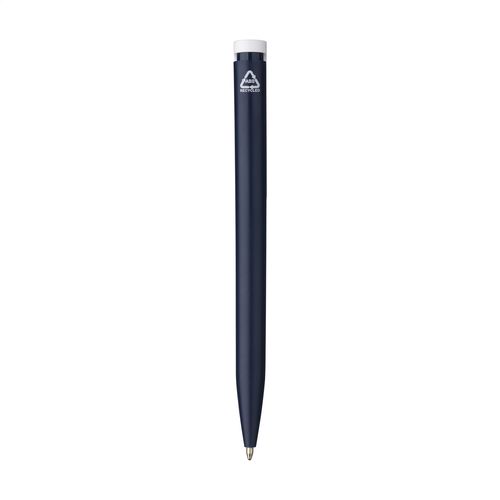 Stylo à bille à encre bleue dont le corps est fabriqué en ABS 100% recyclé. Le clip/bouton-poussoir de ce stylo affiche un accent de couleur saisissant et l’espace nécessaire pour une grande impression numérique en pleine couleur. Certifié GRS.
