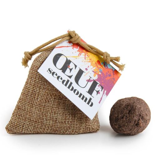 Inspirée des mouvements de guérillas urbaines, cette bombe à graines, façonnée sous forme d’œuf, est composée d’un mélange de terre et de graines mellifères. Vous pouvez la lancer en compagnie de vos collègues, de votre famille et de vos amis pour contribuer à la végétalisation des espaces verts en ville.