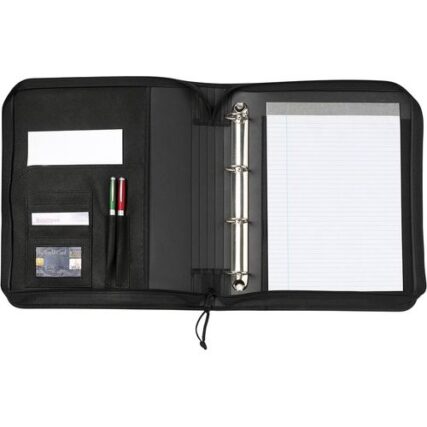 Porte-documents en polyester 600D et PVC livré avec bloc-notes, compartiment classeur et range-documents à soufflet.
