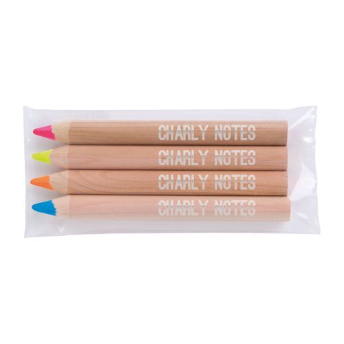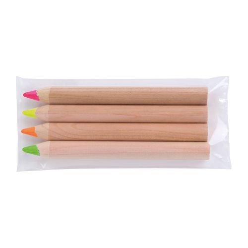SACHET de 4 CRAYONS SURLIGNEURS PRESTIGE NATUREL 8,7 cm, RONDs, VERNIS INCOLORE, tête coupée
