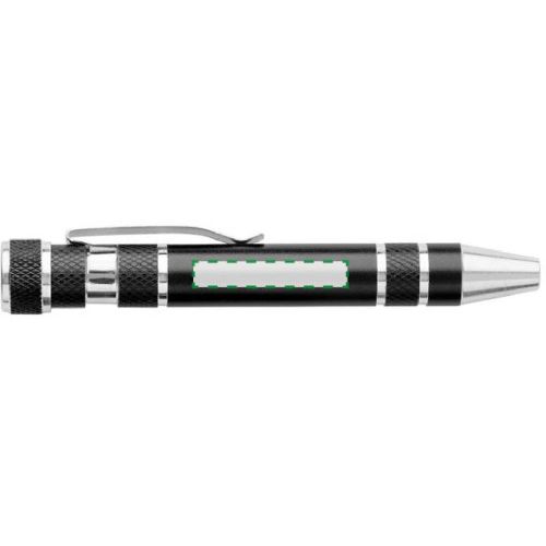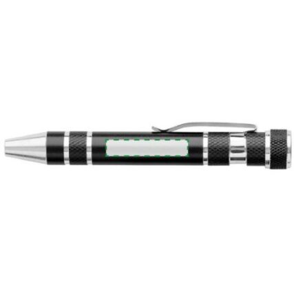 Parure composée d’une torche téléscopique de 3 LEDS en aluminium et d’un tournevis contenant 4 embouts plats et 4 embouts philips dans une boîte cadeau.
