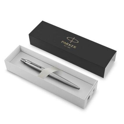 Stylo bille Parker ‘Jotter’ en acier inoxydable dans une boîte cadeau, mine bleue.
