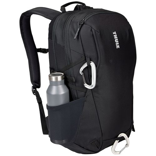 – Les poches latérales en maille s’étirent pour accueillir une bouteille d’eau, un bloc d’alimentation ou un parapluie